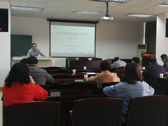 为了进一步贯彻落实学校党委“一基三实、一路三建”发展思路,助力学校“三大攻坚战”,推进新校区建设和红湘校区提质升级工程建设,以实际行动为完成学校2019年十项重点工作服好务,在分管校领导何旭娟副校长的具体指导下,招投标管理中心将分批深入学院、部门对新修订的《365英国上市公司采购与招投标管理办法》进行宣讲。